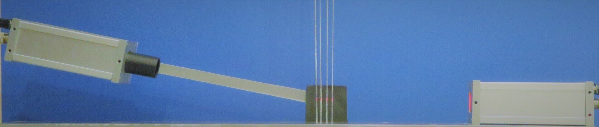 - 180° arrangement (illumination in front, detector behind the filament bundle, see image above) for measurements through the blow-box